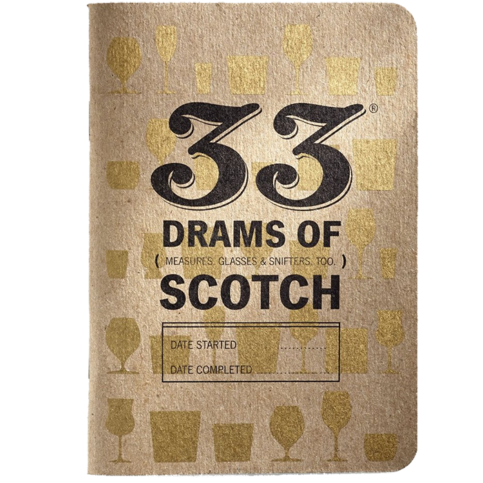 33 Drams of Scotch is a whisky journal that provides an easy way to quickly record whisky tasting notes in a small, convenient notebook format. It's thinner than an iPhone and easily fits in a back pocket.
