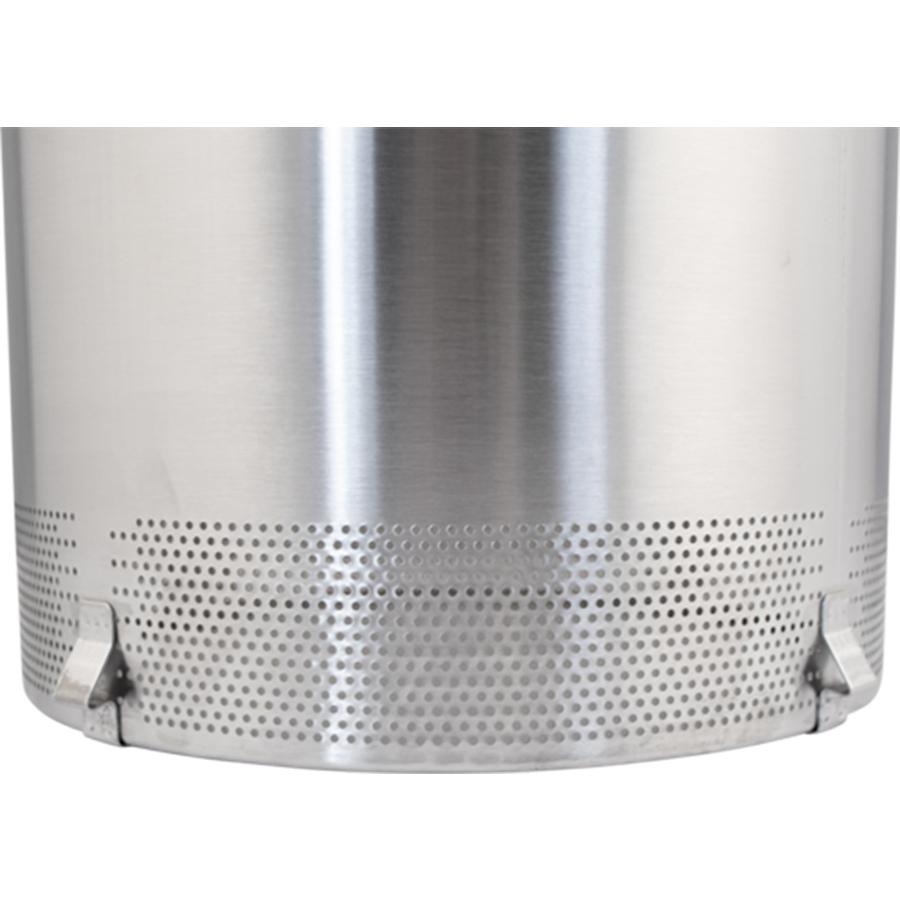 Other features on the BrewZilla malt pipe include the middle row of feet and perforated bottom. By adding a second row of feet to the malt pipe, you can remove it from the boiler in two stages. Take it to the middle row of feet for the initial lift, wait for the wort to drain, then lift it all the way out to completely drain the malt pipe and begin sparging. The malt pipe features a perforated section at the bottom which improves mash recirculation flow without sacrificing efficiency.