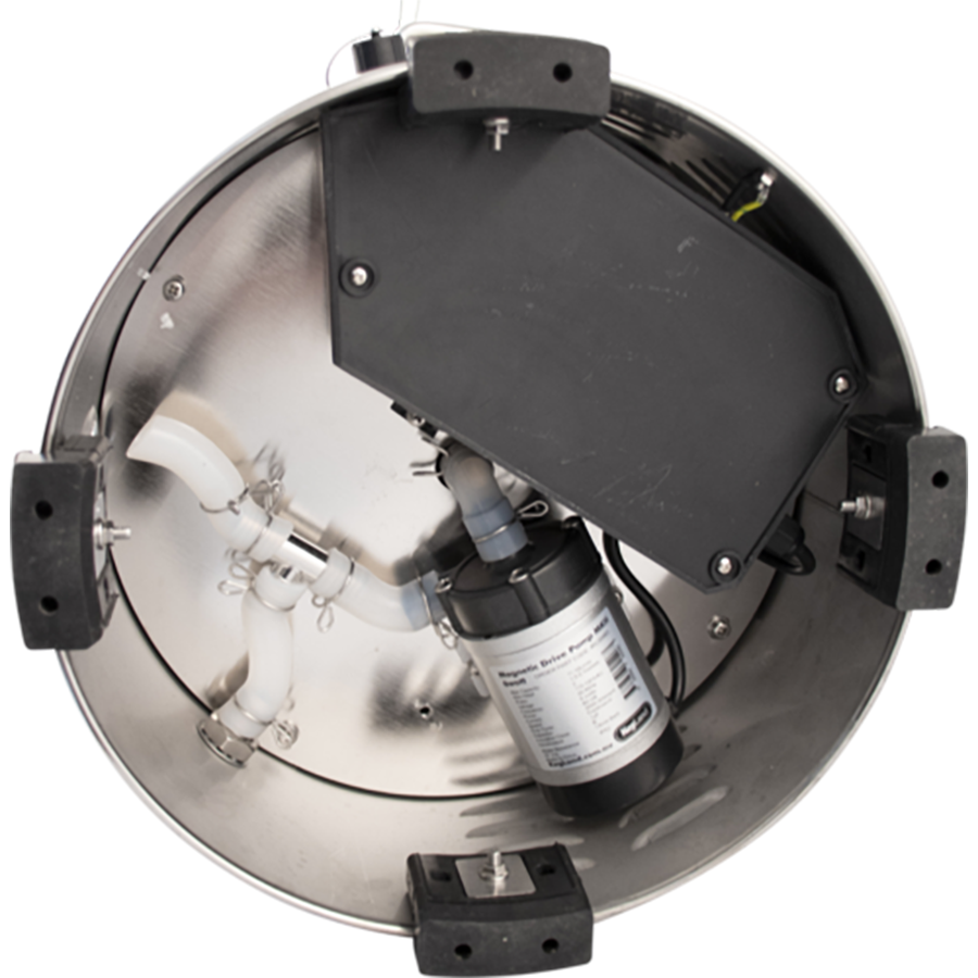 The built-in pump allows you to recirculate your wort during the mash for improved efficiency and more even temperature distribution. It can also be used to transfer your wort from kettle to fermenter rather than relying on a gravity feed, and with the optional CIP Rotar, you can use the pump to clean your BrewZilla (or fermenter) after every use. During your brew day you’ll be able to control the pump from the RAPT Controller with a dedicated button for turning the pump on and off, along with the ability to adjust the pump flow. This doesn’t control the actual volume of the flow (you can do that from the ball valve located on the recirculation arm), but rather cycles the pump on and off automatically based on your setting. At 100%, the pump remains on continuously. But at 80%, the pump will cycle to be on 80% of the time and off 20% of the time. This may not be a feature that every brewer uses, but it’s an excellent way to avoid running the pump dry accidentally, as the time the pump is off allows recirculating wort to filter through the grain bed and back into the pump inlet.