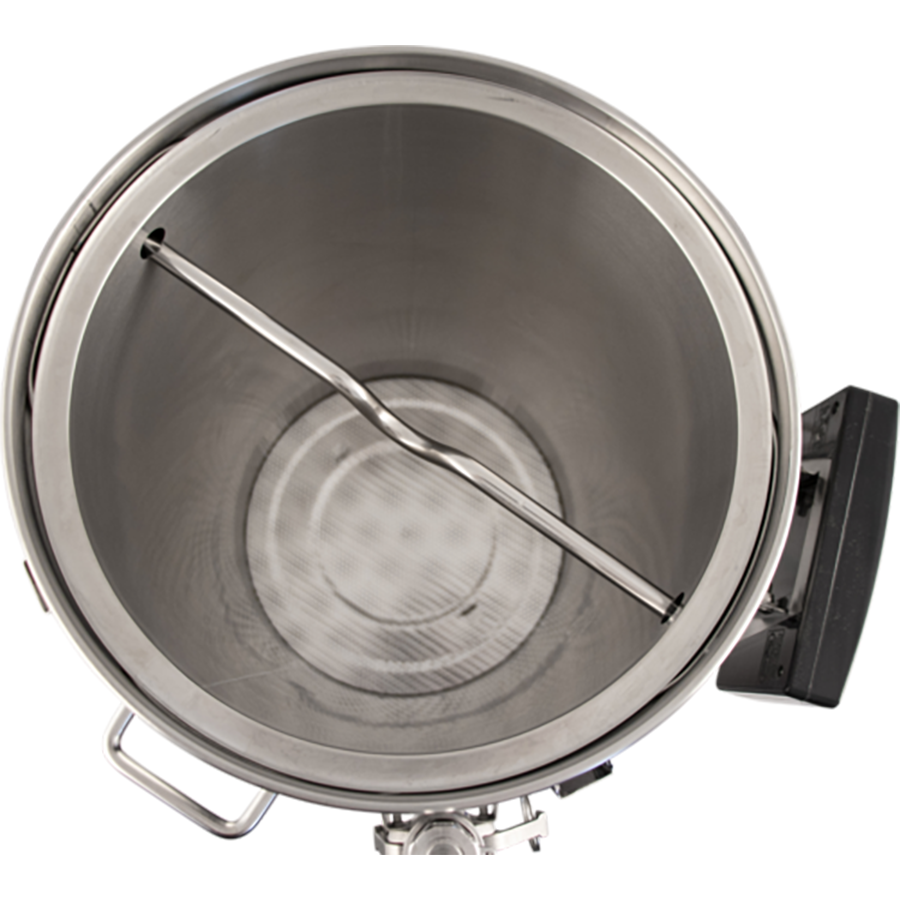 Leave no wort behind. The concave base with center drain allows you to extract every last drop of wort to your fermenter. Many brewers are used to whirlpooling after the boil to pull hop matter into the center of the kettle, then transfer out using a pick-up tube that pulls from the kettle wall in order to avoid sucking up the solids. But one of the key features of the BrewZilla is the false bottom protection screen. This screen avoids the need for doing a whirlpool, filtering wort as it transfers and blocking more than 95% of hops and hot break from getting sucked into the pump. This prevents blocked pump issues and increases the efficiency of your brew house by eliminating kettle loss from wort that may have otherwise been left behind.