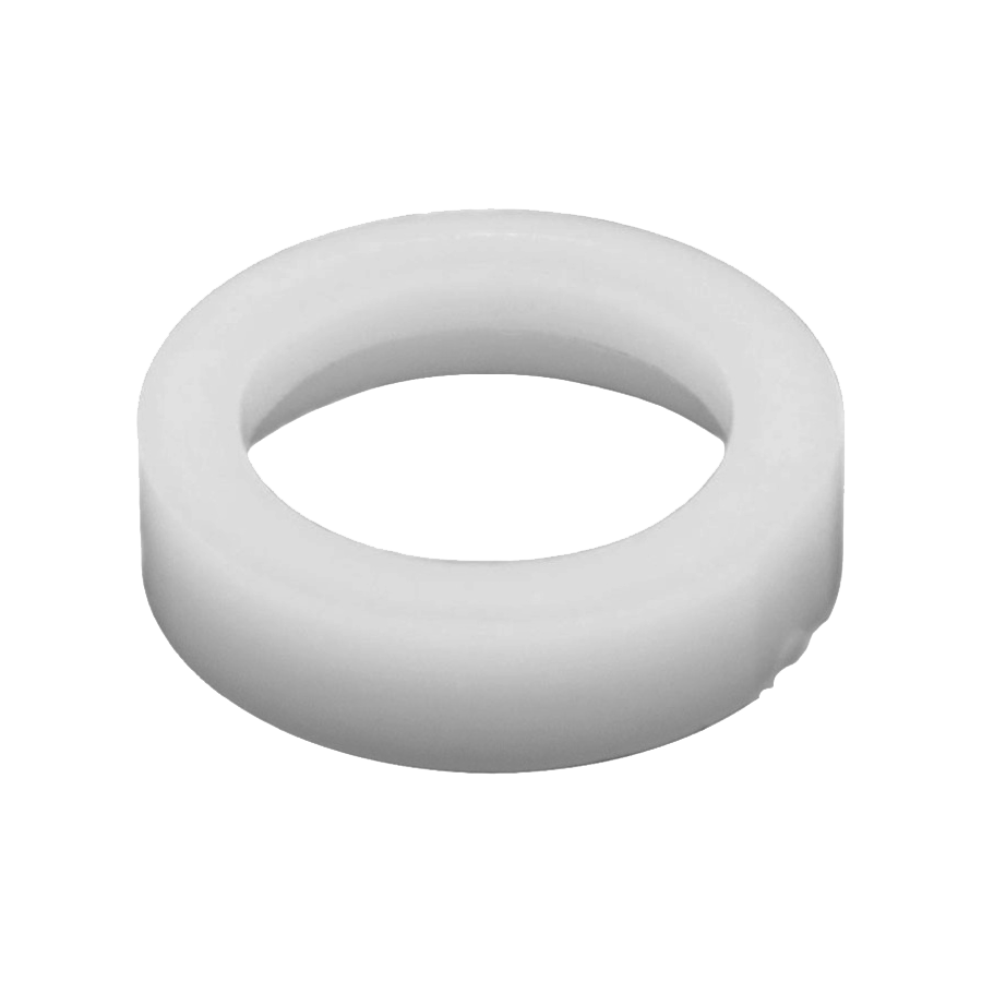 Replacement plastic washer for chrome faucets. Concave on one side, flat on the other. These washers are placed directly on top of the metal lever, and typically have a rubber washer and not on top to secure.