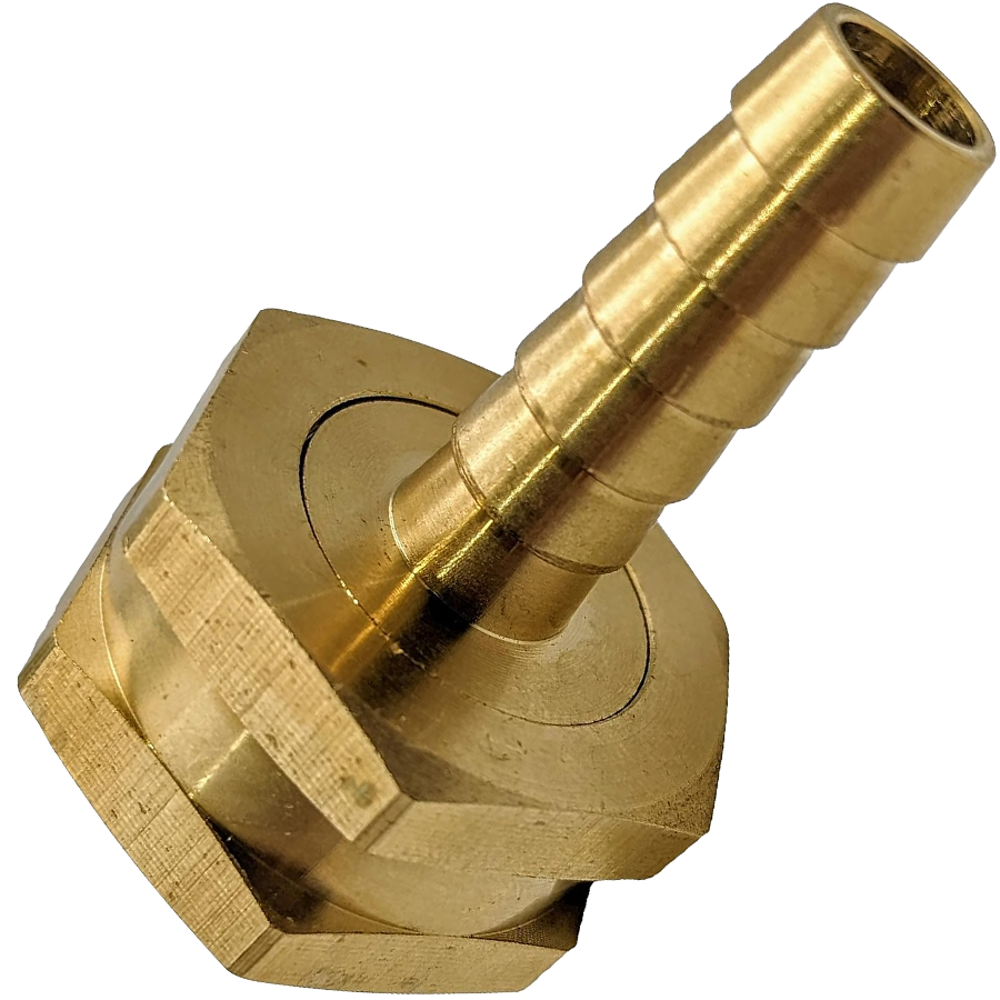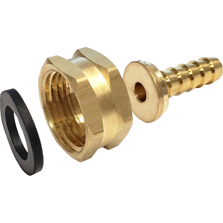 Brass garden hose adapter adapts garden hose style fittings to 3/8" tubing through a barbed fitting. These are often used in immersion wort chillers, but can be used in other applications as well. The fitting comes with a rubber washer to prevent leakage at the connection point.