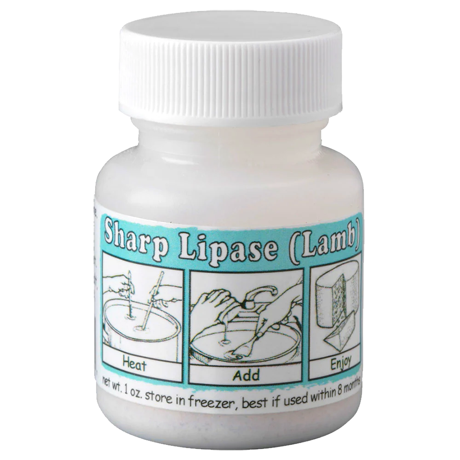 1/2 hour before use, dissolve 1/8 tsp of lipase for every 2 gallons of milk in 1/4 cup cool, non-chlorinated water. Add to milk at the same time as culture.