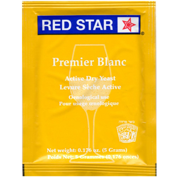 Red Star® Premier Blanc (Davis 595), a strain of Saccharomyces bayanus, has been derived from a pure culture slant of the Institut Pasteur in Paris. This strain has been widely used in the U.S. since 1968. It is a strong fermenter with good ethanol tolerance, and will readily ferment grape musts and fruit juices to dryness. This strain also has good tolerance to free sulfur dioxide. This strain is recommended for all white wines, some reds and for fruit juices. Although this yeast is somewhat flocculant, it is not commonly used for sparkling wine. Pasteur Champagne has been recommended, by several sources, for restarting stuck fermentations.