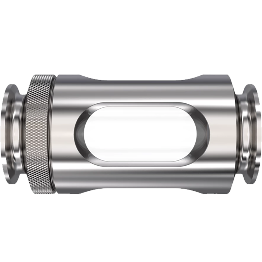 The Spike TC Sight Glass is made up of five parts, compared to the 26 parts in a standard sight glass. No tools are required to assemble and disassemble. The glass is also protected by the stainless guard which protects the glass from even the clumsiest brewer.
