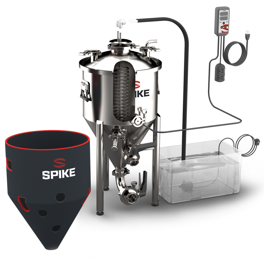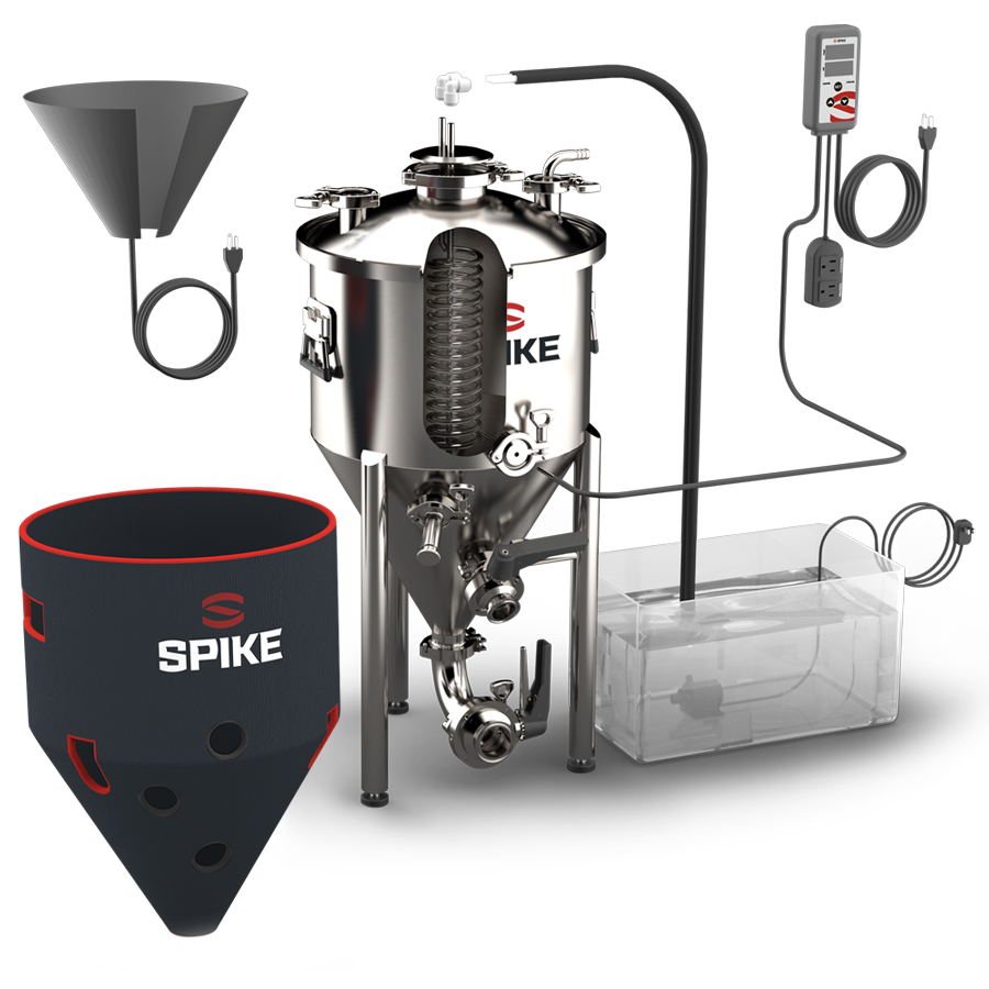 Spike's TC100 temp control system will manage both cooling and heating of your Spike Conical. The digital controller's temp probe will feed into the included thermowell on their CF Series Conical. Also included is a specially fitted neoprene jacket which features reinforced port holes to reduce the chance of ripping during install. Last is special special insulated tubing. This almost eliminates tube cooling losses and will prevent your cooling lines from sweating all over your floor.