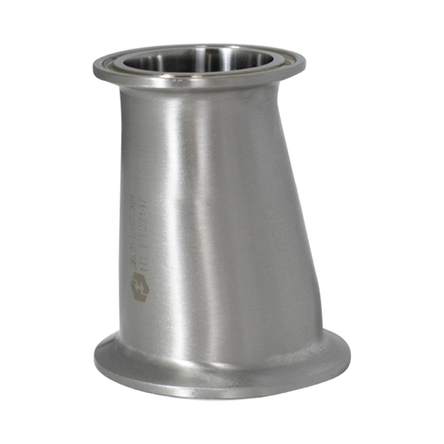 Adapt any 2" tri-clamp port or valve to work with an existing 1.5" tri-clamp fitting. The eccentric design is ideal for reducing 2" to 1.5" pipe in horizontal runs. Perfect for attaching a 1.5" hose to the bottom of fermenters with 2" bottom ports.